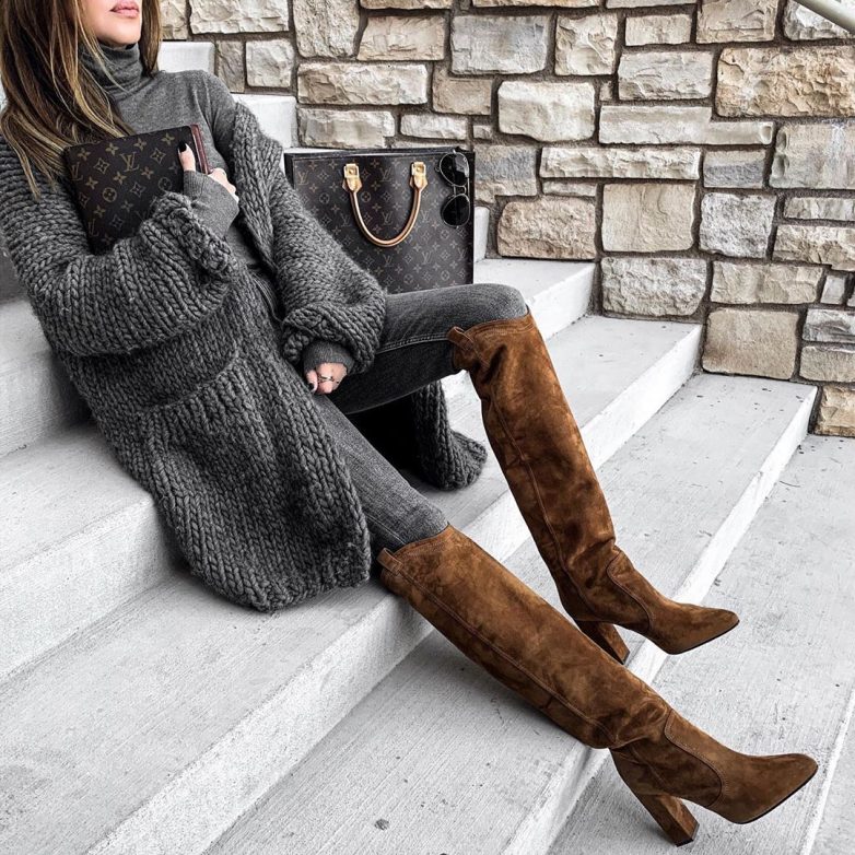 Серый кардиган – удобная вещь, которая подходит практически к любому стилю одежды. Его носят все женщины, так как знают, что любой лук совместно с серым кардиганом будет эффектным и модным.
