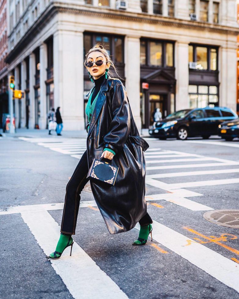 Нефритовый цвет отлично смотрится со всеми оттенками зеленого, с желтым он становится еще более сочным и интересным. Мы сделали для вас подборку самых модных образов с использованием темно-зеленого.