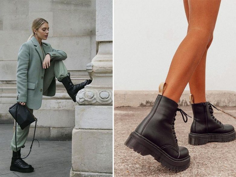 Грубые ботинкиВсё чаще можно встретить девушек в такой обуви. Не удивительно, ведь грубые ботинки довольно удобны в повседневности. Они прекрасно подходят для любой погоды, и при этом их не обязательно сочетать с джинсами или брюками. Трикотажные платья или юбки также станут отличным дополнением.