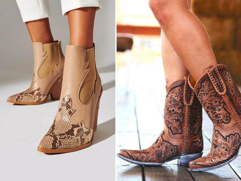 Сапоги казаки — безусловный тренд этого года! Их еще называют «ковбойскими». Если хочешь вариант наиболее базовый, то выбирай без декора и универсальных оттенков или сделай ставку на казаки с комбинированными кожаными деталями или с узорами в стиле вестерн.