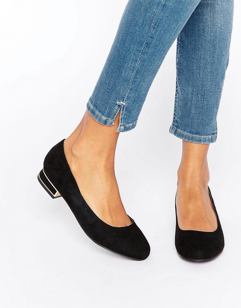 1. Балетки. Модели необходимо подбирать с невысоким каблуком, поскольку абсолютно ровная подошва также вредит, как и высокий каблучок.