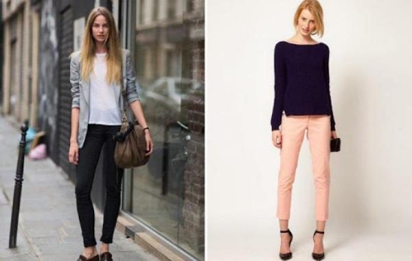 Классическими вариантами считаются зауженные брюки стандартной длины и средней ширины, возможно с подворотами или другими деталями кроя.