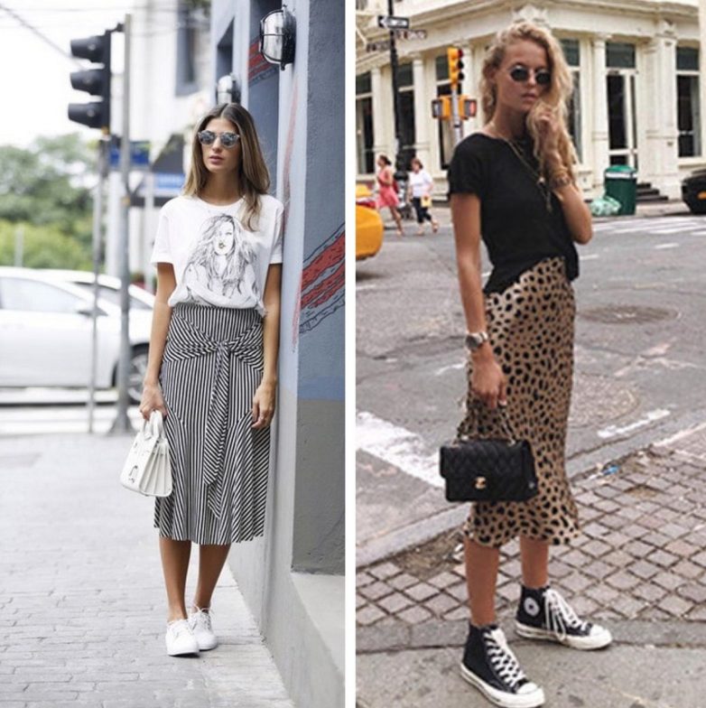 Никто иной, как француженки научили нас сочетать струящиеся платья-комбинации с объемными жакетами, крупными кардиганами и джинсовыми оверсайз куртками, будто снятыми с плеча бойфренда, сохраняя тем самым в образе баланс между ярко выраженной женственностью и будничной сдержанностью.Весной-2020 на смену излюбленным «ночнушкам» приходят шелковые, атласные и сатинированные юбки длины миди. Сочетаем с базовыми футболками, всё теми же крупными блейзерами и кроссовками, которые вечером легко сменяются босоножками на каблуке, превращая повседневный образ в вечерний.
