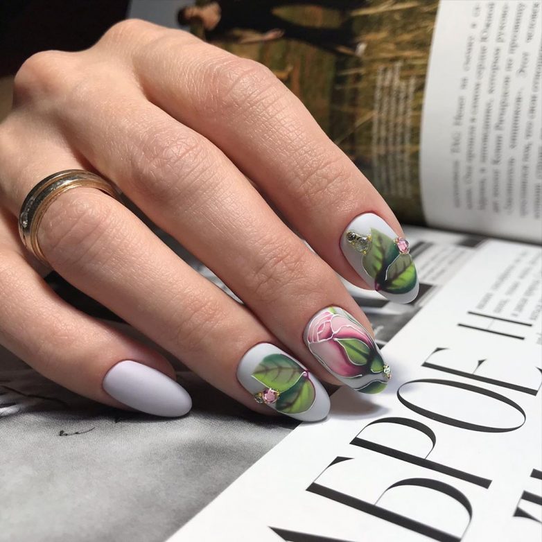 Весной все вокруг расцветает. Цветы нравятся всем абсолютно всем женщинам, поэтому вы точно встретите их весной на ноготках своих знакомых. Этой весной в тренде аккуратные нарисованные цветы на одном или двух ноготках. Можно выбрать рисунок из переводных или самоклеящихся наклеек. Также актуальна лепка в виде цветов на ногтях.
