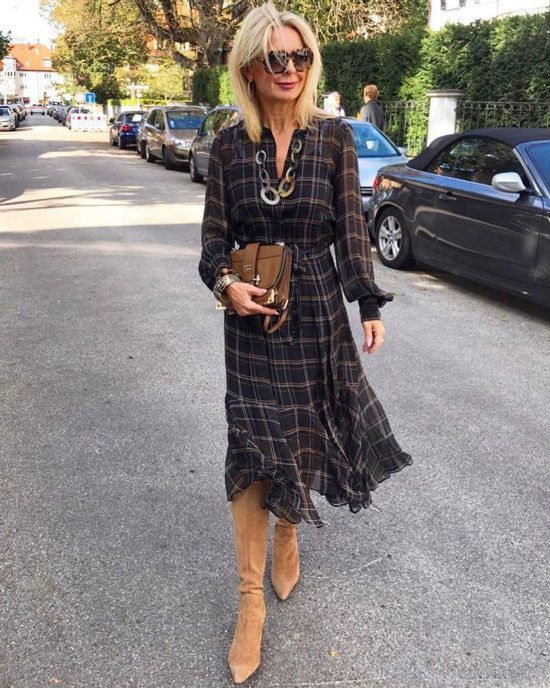 Платья, закрывающие колено, всегда смотрятся дороже и элегантнее. Отлично подойдет длина миди, которая находится на пике популярности.
