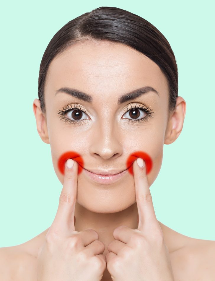 Аккуратно нажмите пальцами на область носогубных складок.