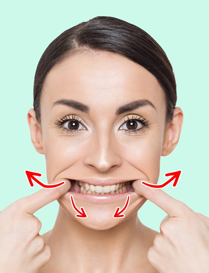Держа рот закрытым, разместите указательные пальцы вдоль линий носогубных складок.