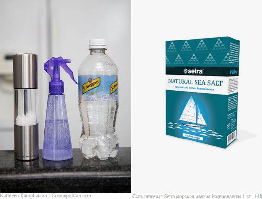 В жару, когда так хочется охладиться, баллончик с термальной водой можно заменить обычным пульверизатором. Наполните его минеральной или просто фильтрованной водой, положите чайную ложку морской соли и периодически обрабатывай лицо этой жидкостью. Вы наверняка замечали, что на море отступают все проблемы с кожей и проходят высыпания. Так создайте свое маленькое море дома!