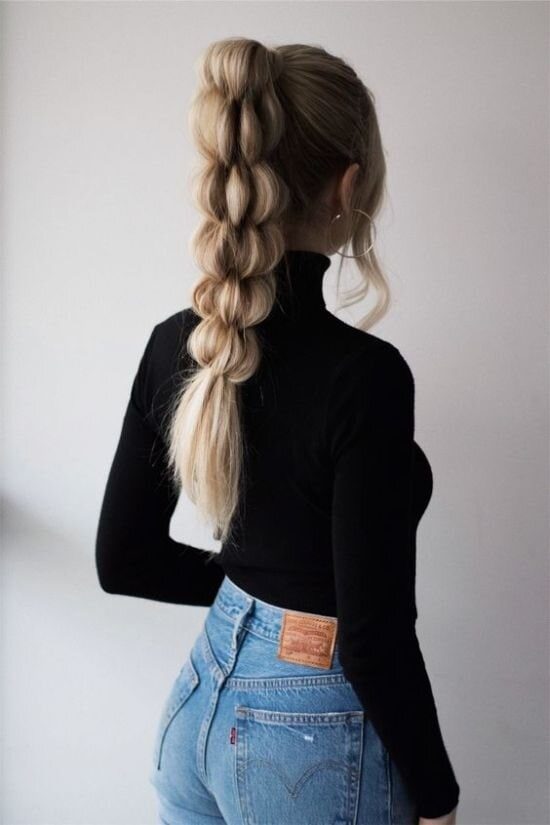 Роскошная объёмная коса в высоком хвостике
