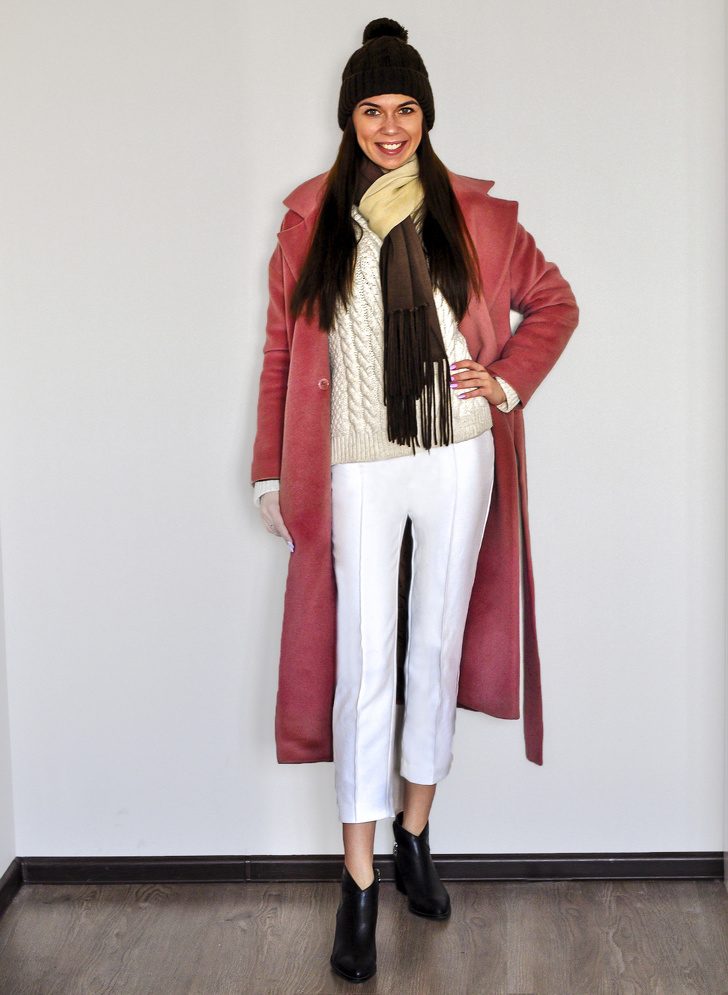 Не понравился образ «поход в кино». Свитер нужно было объемный, но не крупной вязки, а тоненький или блузу свободную, как по моему вкусу.А в общем не плохо подобраны луки. Девушка очень приятная, симпатичная.