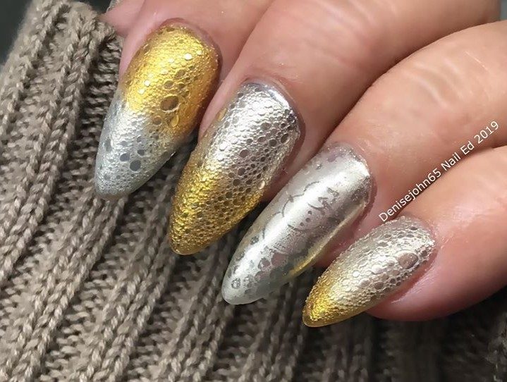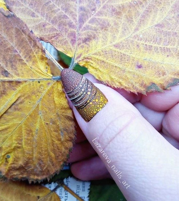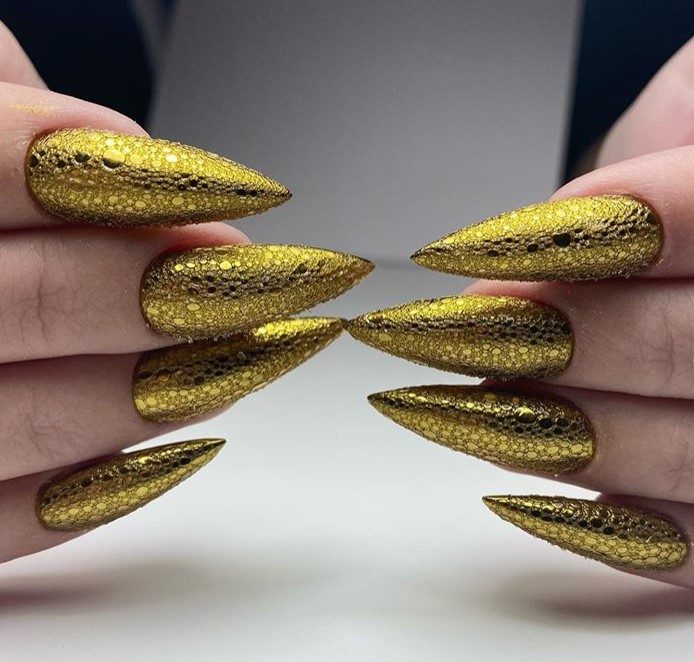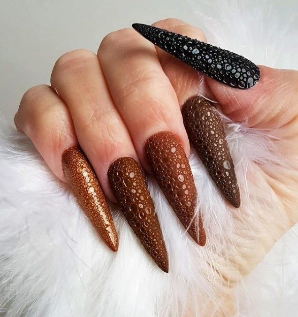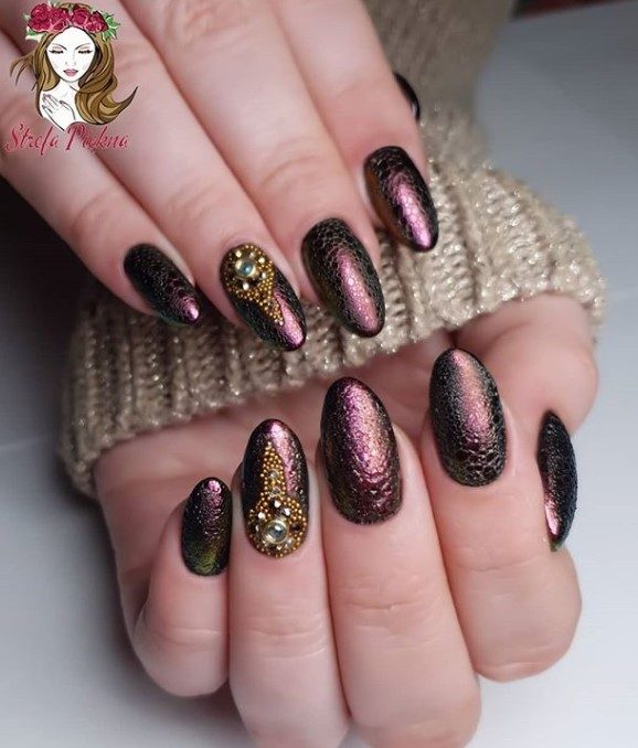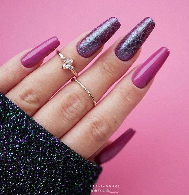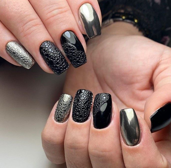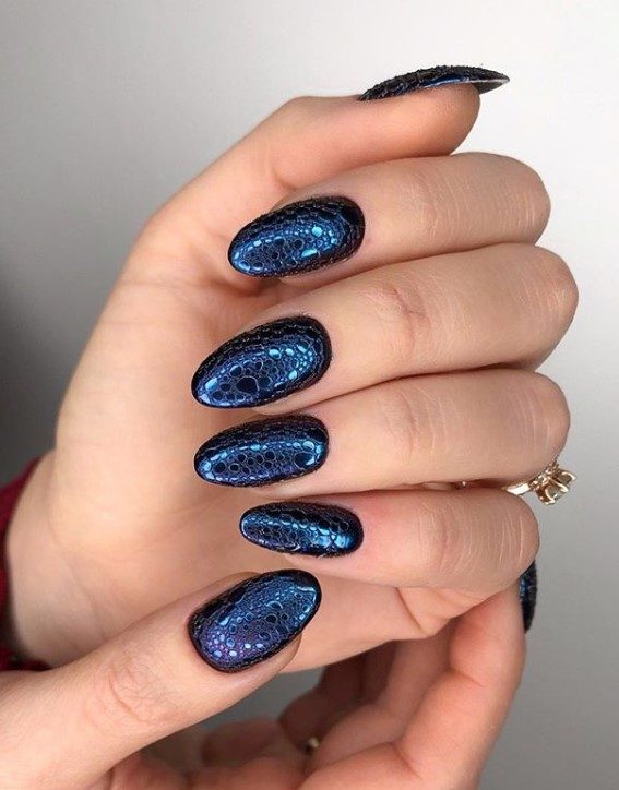 Пузырчатый рельеф может покрывать поверхность одного ногтя или абсолютно всех. Выделите один или два пальца, сделав на них отличающийся от остальных маникюр.