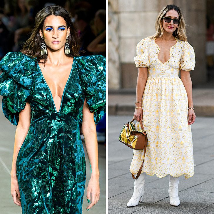 Пышные рукава. Все варианты пышных рукавов представили на подиуме Balenciaga, Alexander McQueen и Nina Ricci. Нужно отметить, что такой крой верха визуально делает талию более тонкой.