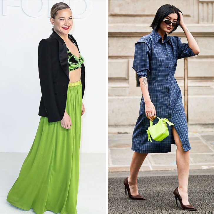 Тенденция использовать в образе ярко-зеленый акцент, который можно назвать неоновым, неожиданно вернулась на подиумы. В этом году коллекции с таким цветом продемонстрировали Balenciaga, Saint Laurent, Christian Cowan.