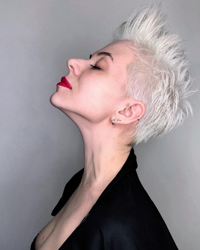 Пикси может быть разной, от ультракороткой до удлиненной. Также в стрижке используются различные челки. Для блондинок, которые выбрали писки, лучше выбрать удлиненный вариант челки набок. При помощи укладки светлый тон и стильная стрижка создадут невероятно элегантный и в то же время дерзкий образ современной дамы. Кстати, стилисты отмечают, что пепельный оттенок в пикси идеально подходит дамам после 50 лет, которые страдают от седины.