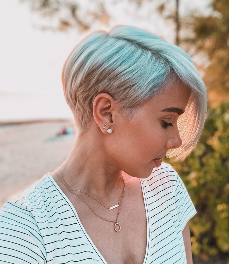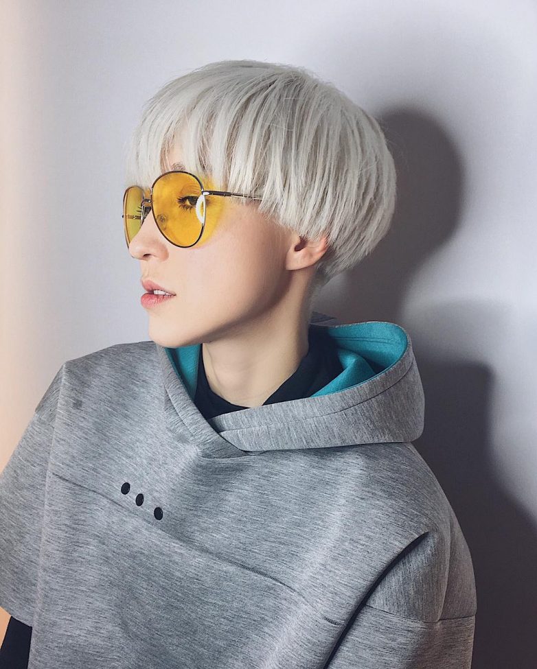 Первая стрижка, которая приходит на ум об упоминании коротких волос – это пикси. Ее популярность неоспорима, женственный образ и грация дам с такой прической оценили уже многие стилисты. Пикси в светлых тонах смотрится еще более шикарно и стильно. Очень часто современные женщины используют в стрижке писки пепельный блонд. Такое окрашивание позволяет придать волосам особенный блеск, а короткая длина только усилит эффект от тона волос.
