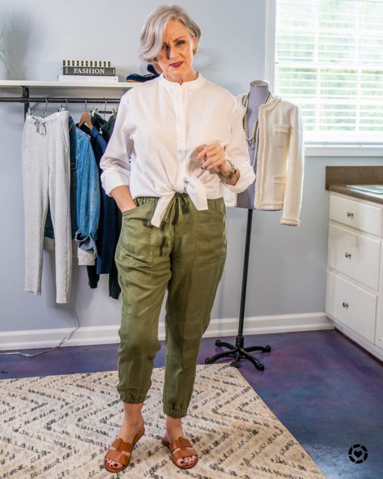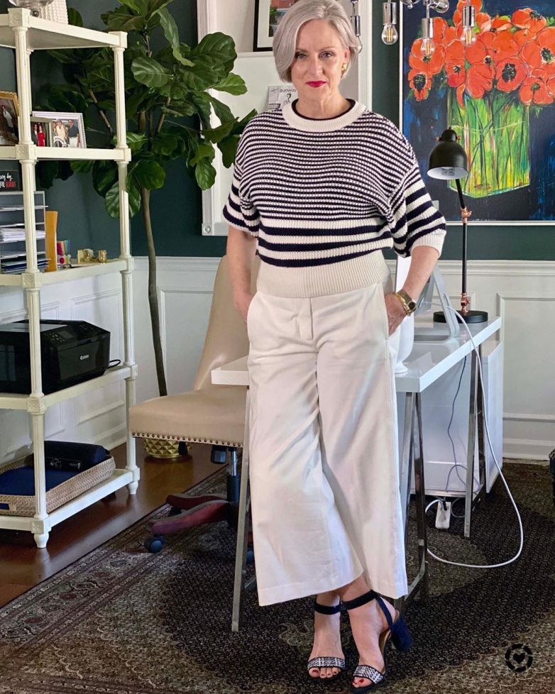 Для летнего стильного аутфита женщинам после 40-50 лет профессионалы рекомендуют подобрать под фигуру классические белые брюки. Можно выбрать как укороченную модель, так и фасон со стрелками. При правильном комбинировании брюки пригодятся для работы, вечерних прогулок по городу, похода в ресторан или даже для торжественных мероприятий.