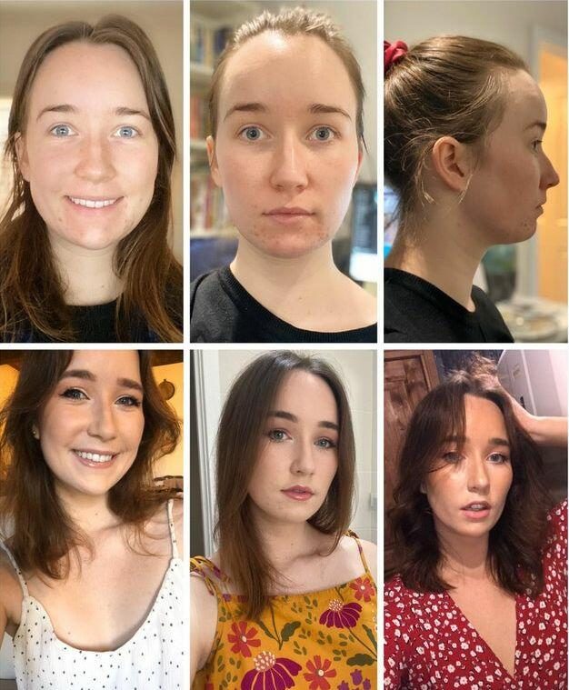 «На верхних фото я без макияжа, а на нижних с минимальным количеством косметики»