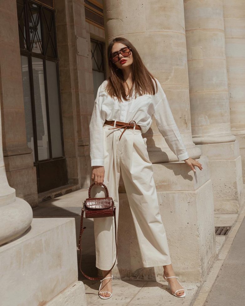 При составлении модного летнего образа на работу, не бойтесь использовать в луке стильные яркие акценты, которые могут размещаться на ремешке, обуви или на сумке.