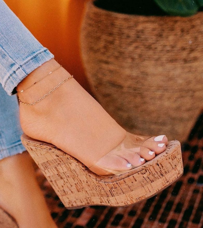 Летняя обувь на пробковой танкетке прекрасно подходит абсолютно каждой девушке. Ведь такие босоножки удобные и практичные в носке. Помимо этого, вам удастся подчеркнуть всю привлекательность своих ног, их изящность. Чтобы получить в такой обуви самый стильный образ, надевайте макси юбки или джинсовые мини платья. От джинсов и прочей одежды свободного кроя стоит отказаться.