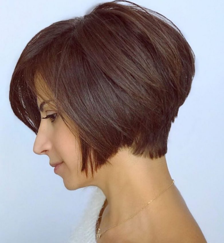 Эта стрижка, как никакая другая, дает возможность женщине почувствовать себя молодой и красивой дамой. Прическа предусматривает открытость лица и шеи, что создает изящный утонченный образ. Ровный срез по нижней части является основным отличительным моментом стрижки. Элегантность образа подчеркивается основной деталью прически ножкой.