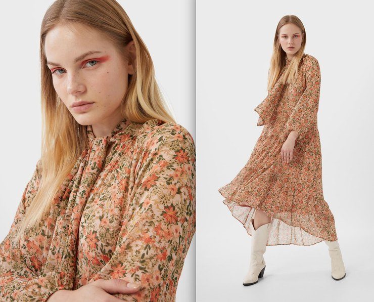 Платья из легких, летящих тканей всегда создают очень женственный и романтический образ, а длина миди делает его более загадочным и игривым. Нежные оттенки, невинные принты выглядят всегда очень свежо. А ведь мы этого и пытаемся добиться всегда, правда?