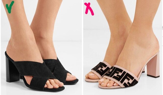 Туфли с открытым носком и ремешком вместо задника уже давно выглядят неактуально и сильно подпортят ваш офисный образ. Если уж вам хочется и каблуки, и открытость, выберите туфли без задника вообще, но с закрытым носом.