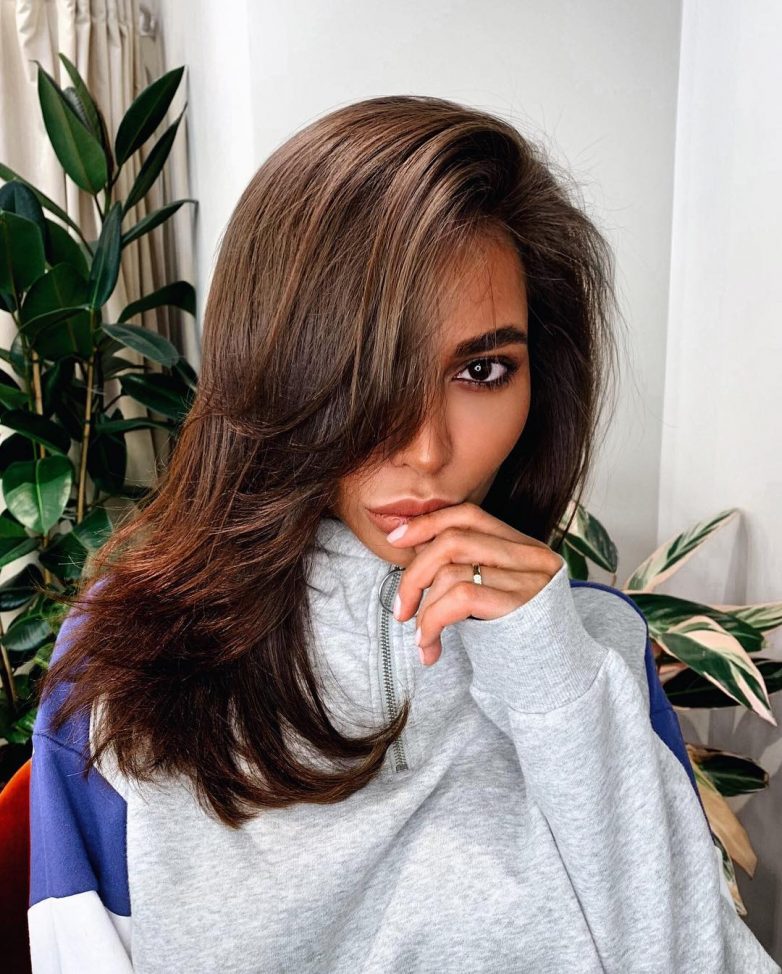 Стрижка каскад позволяет выполнить простую, но очень эффектную укладку. Стилисты используют фен и щетку, тем самым придавая прикорневой объем и выполняя идеально разбросанные по плечам пряди. Прическе просто необходима объемная длинная челка, позволяющая решить сразу две проблемы – создать идеальный образ красотки и спрятать некоторые недостатки лица.