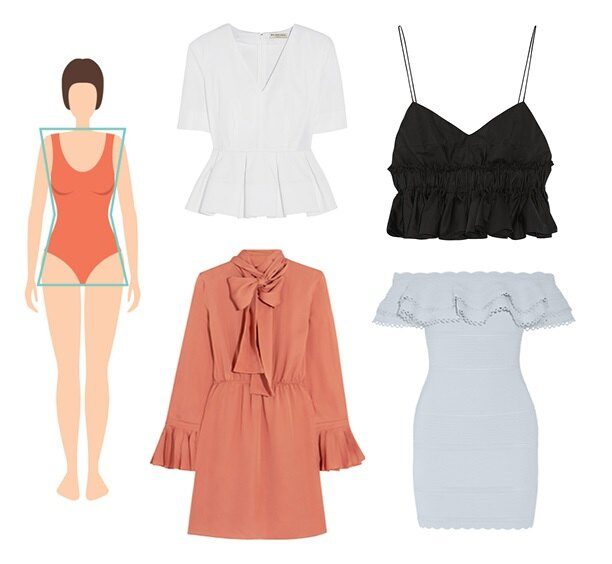 Всеми силами стараемся обрисовать талию. В этом помогут топы с контрастной оборкой внизу, блузы с вырезами на рукавах, платья с поясом и любые другие приталенные наряды. Обращай внимание на вещи с косой вертикальной оборкой, а вот свободные сарафаны прямого силуэта лучше оставить в магазинах.