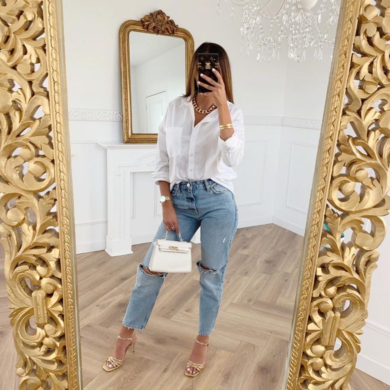 Стильный образ можно создать, сочетая рубашку, джинсы и кожаный пиджак. А как свежо и оригинально смотрится белая рубашка с белыми брюками свободного кроя. Такой наряд можно дополнить жакетом или удлиненной жилеткой.