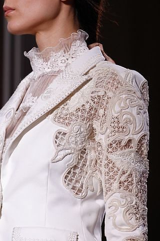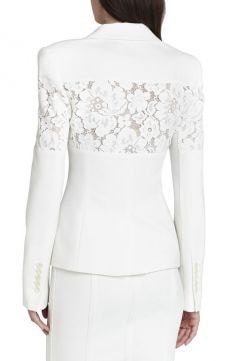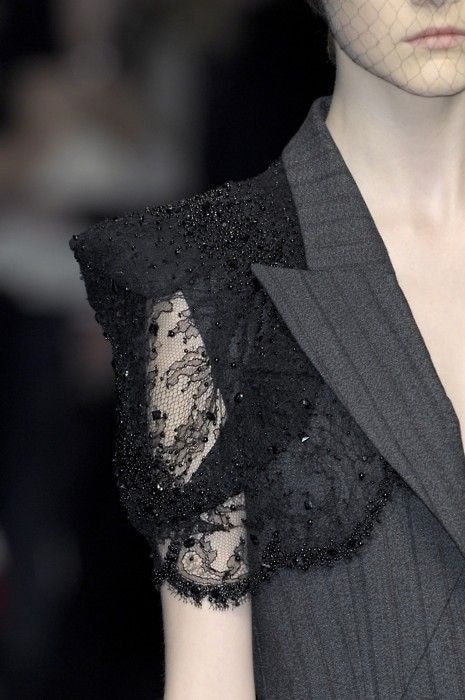 Будь это вставка на горловине, или кружевные полупрозрачные рукава, карманы или небольшое кружево на юбке — с такими деталями деловой костюм сразу заиграет новыми красками. Оцените необычные кружевные детали в строгих костюмах ниже: