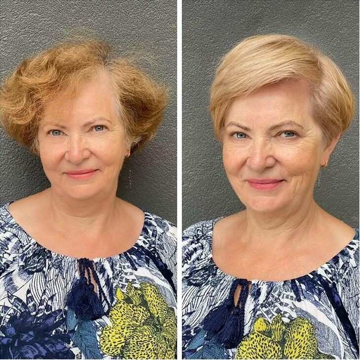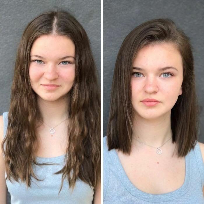 Не все изменения получились...3 модель-правая сторона получилась плоско, до было лучше.6 модель-очень неудачно получилось, слишком высоко поднята челка.9 модель-на много лучше было до, после стала выглядеть на 10 лет старше.14 модель-лучше было до, какое-то гнездо на теменной зоне.19 модель-слишком светлый цвет, девушка стала, как моль и лоб высокий прямо просится чёлка.