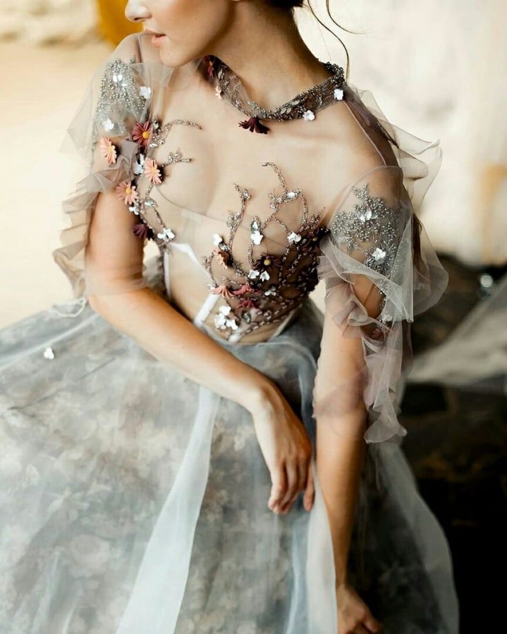 Роскошные пышные и длинные платья в пол смотрятся сказочно и превращают женщину в королеву. А если такое платье дополнить вышивкой, то результат становится ещё лучше! Нежная вышивка с цветами — именно та деталь, которую можно добавить в вечернее, свадебное, винтажное, выпускное платье.