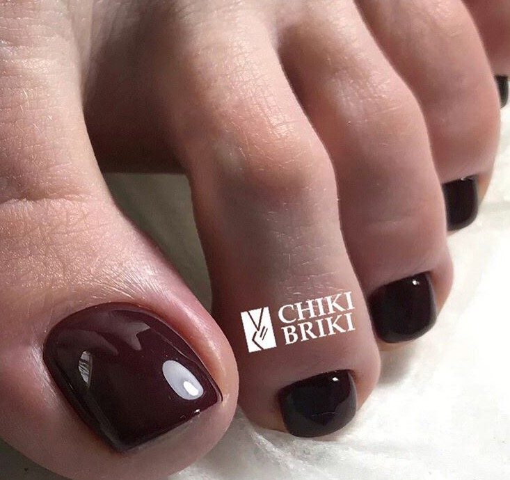 Давайте рассмотрим, какие именно варианты бордового педикюра предложены мастерами в текущем сезоне.
