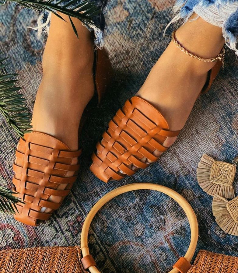Повседневный образ включает в себя модель босоножек с закрытым носом без каблука, на легкой подошве, отличающиеся комфортом;