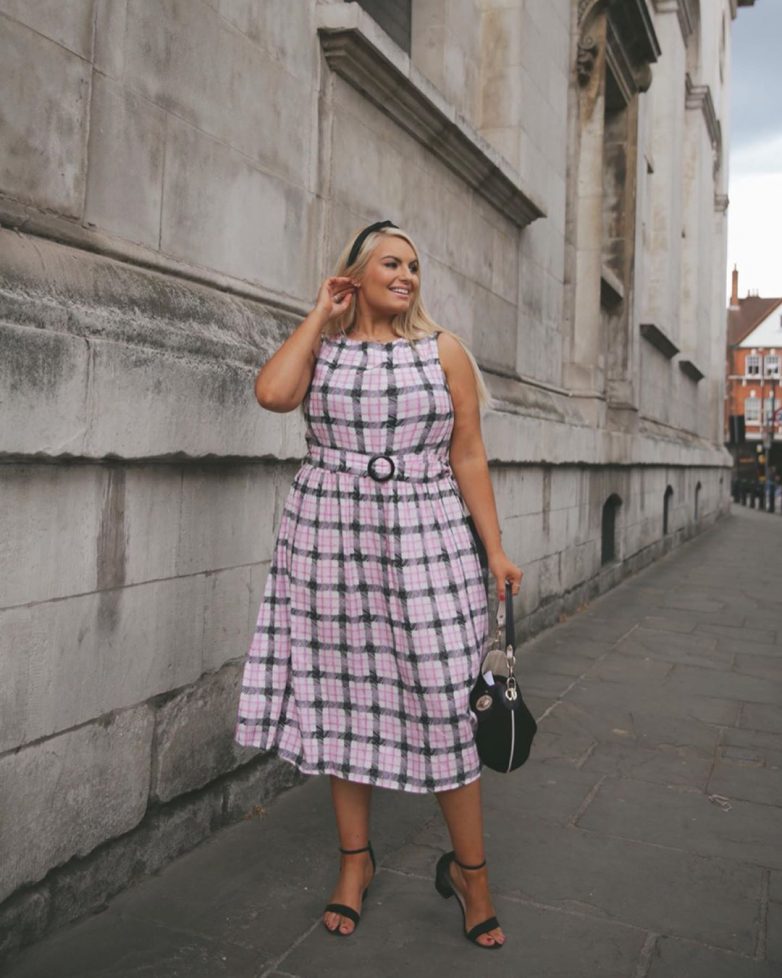 Объемный рисунок ткани способен визуально добавить фигуре несколько размеров. Из таких тканей, с учетом особенностей фигуры, шьют идеальные платья только единицы портних. Если рисунок неправильно расположить, то он будет нарушать пропорции тела: укорачивать фигуру, делать ее объемнее и приземистее. Платье в крупную клетку на женщинах с формами, это худший вариант выбора.