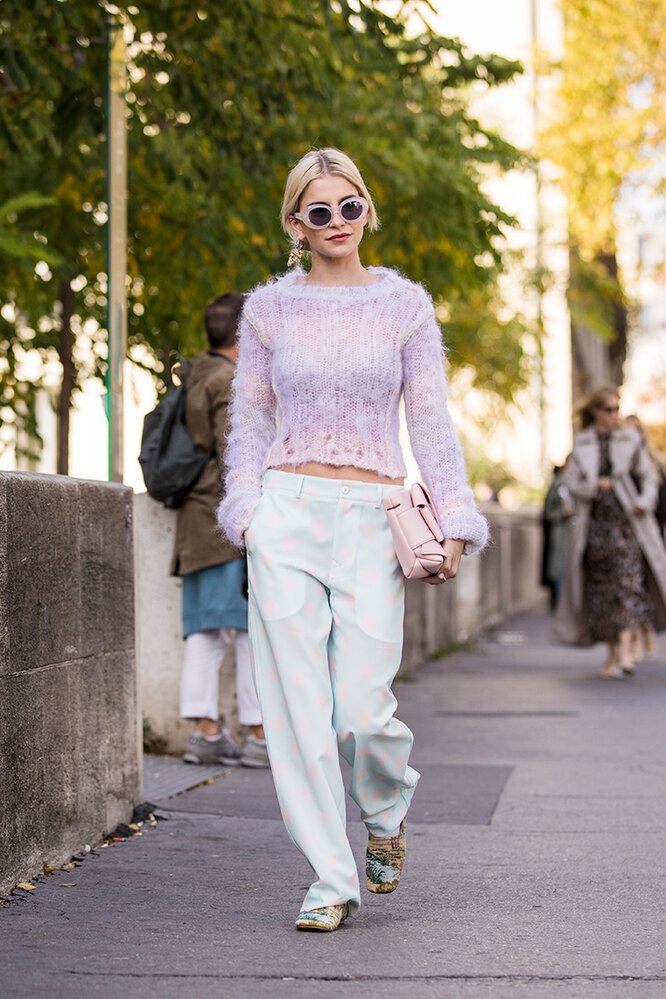 Этот пункт в основном касается укороченных моделей. Чтобы визуально удлинить ноги, нам необходимо создать одну сплошную вертикаль, чего можно добиться, подбирая обувь в тон брюкам или коже (нюдовые лодочки, например). Контрастная граница в нижней части визуально «режет» конечности, из-за чего они выглядят короче, чем есть на самом деле. Если ты дорожишь каждым сантиметром роста, советуем избегать подобных сочетаний.