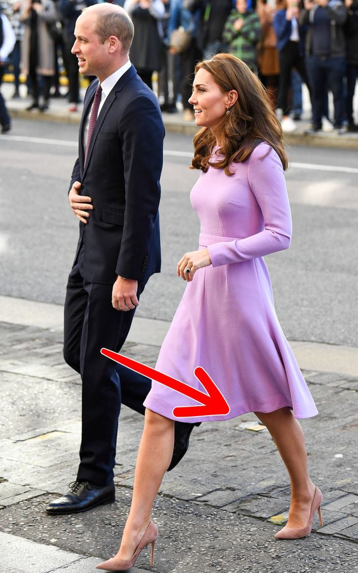 Согласно королевскому протоколу, дамам нельзя оголять ноги. Поэтому Кейт Миддлтон всегда появляется на официальных мероприятиях в тончайших капроновых колготках. А чтобы туфли не соскальзывали с ног, Кэтрин выбирает антискользящие модели со специальными силиконовыми вставками.