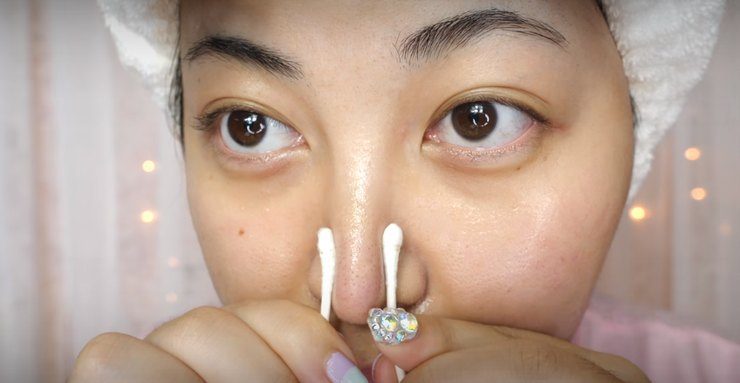 Процедура начинается с нанесения на крылья носа и щеки жирного слоя вазелиновой мази. Фей рекомендует пользоваться очищенным нефтяным вазелином без всяких примесей и добавок.