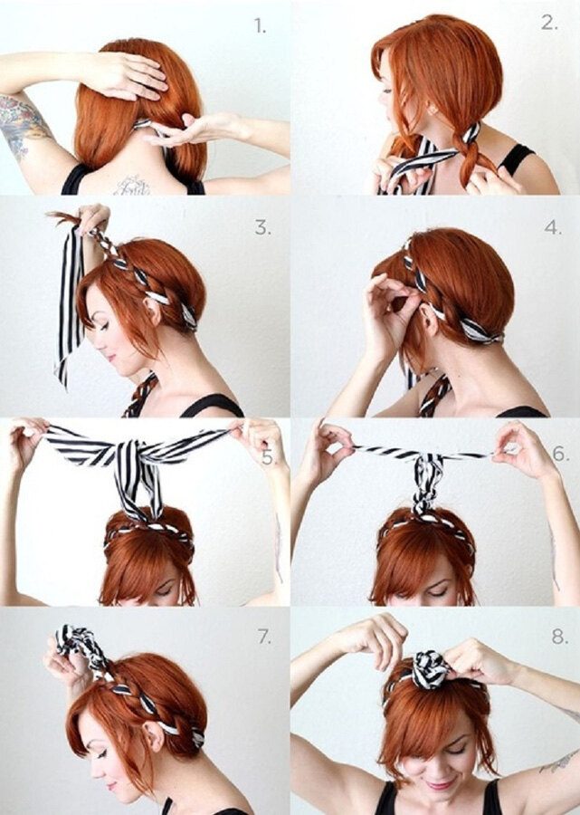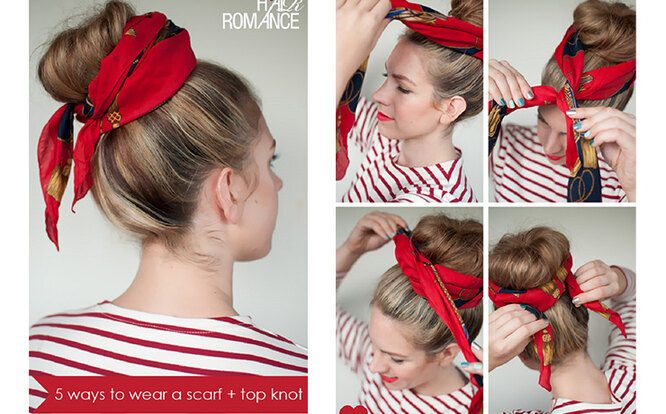 Если у тебя длинные волосы, используй шелковый шарф для того, чтобы сделать красивый пучок. Такой вариант будет отлично смотреться с верхней одеждой – с пальто или тренчем. Сделать эту прическу проще простого: собери волосы в объемный пучок на макушке, оберни вокруг шелковым шарфом и завяжи в узел. Необычный аксессуар и отличная фиксация!