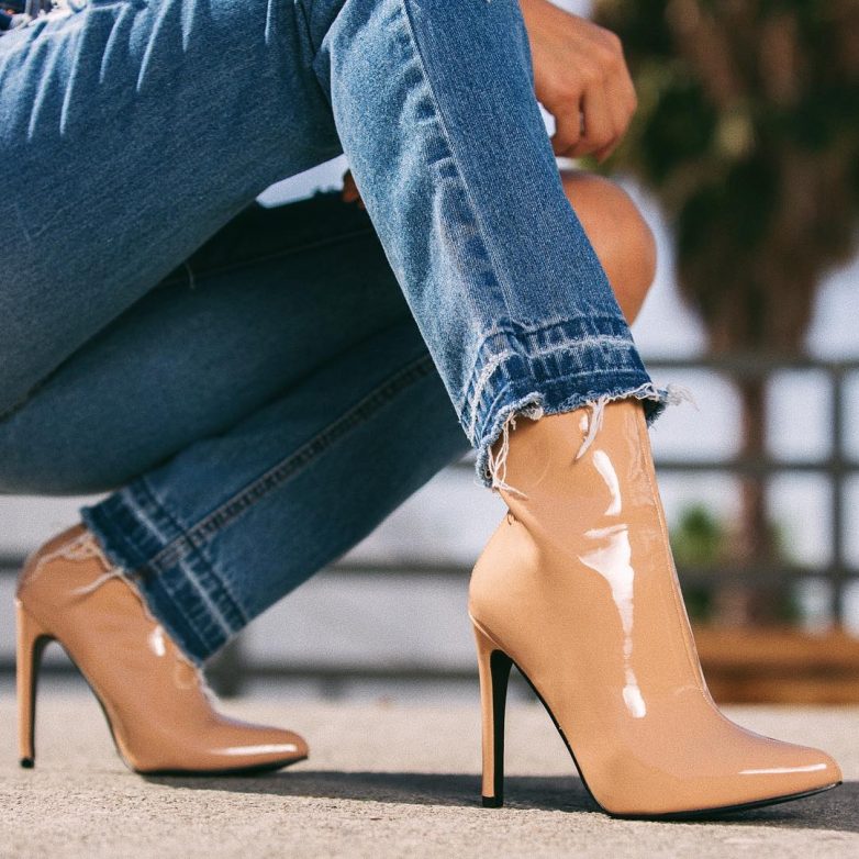 Дамы любят поражать окружающих своей стильной обувью. Чтобы акцентировать внимание на ботильонах, обрежьте ножницами свои узкие джинсы по желаемой длине. Этот вариант ношения джинсовых брюк, поможет вам создать нетривиальный подход к устоявшимся правилам сочетания узких, или прямых джинсов с сапогами.