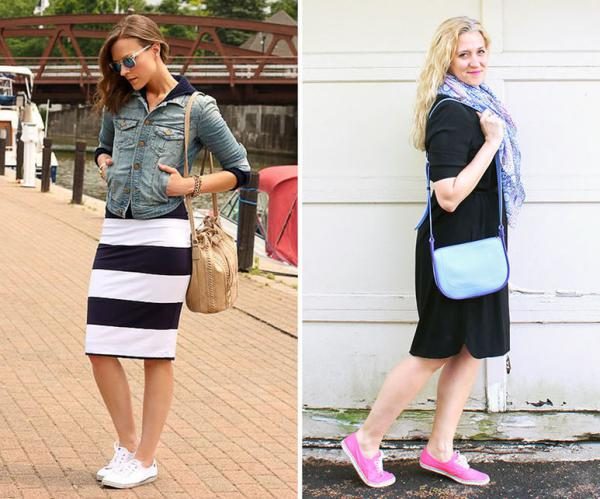 Также трикотажные изделия отлично смотрятся с кроссовками. Выберите любимые белые и будете выглядеть вполне современно;