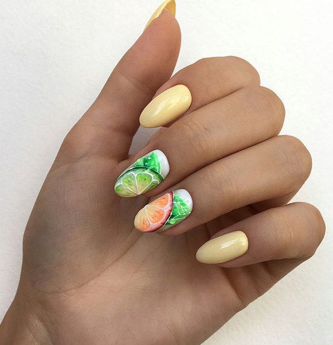 Черный цвет – это выбор уверенных и самодостаточных женщин. Чтобы ваш маникюр был более ярким и насыщенным, обязательно добавьте в него сочный апельсин, яркий лимон и не менее привлекательный лайм.
