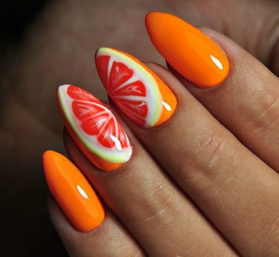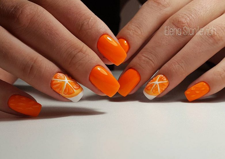 Маникюр – это главная деталь совершенного, стильного образа. Среди новинок в нейл-арт индустрии набирают популярность очень яркие и красочные дизайны. К примеру, эффектно смотрятся ногти, которые украшены сочным оранжевым апельсином.