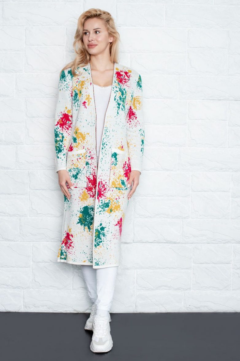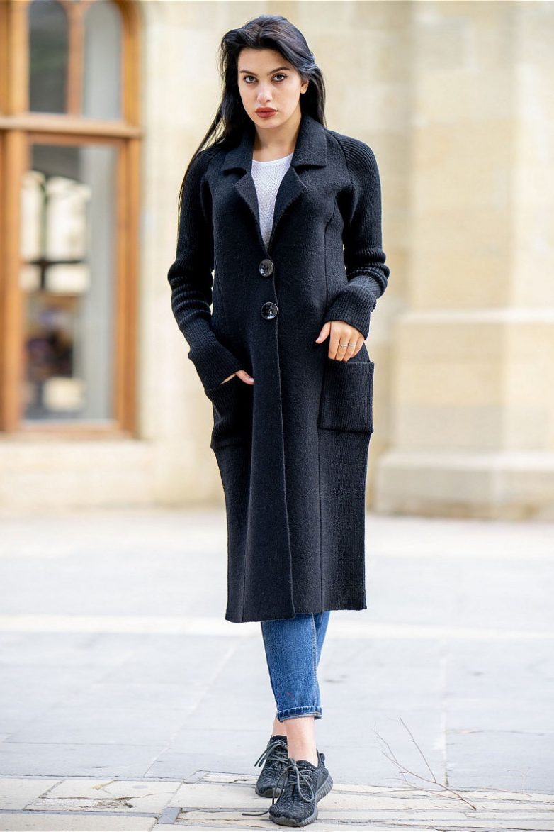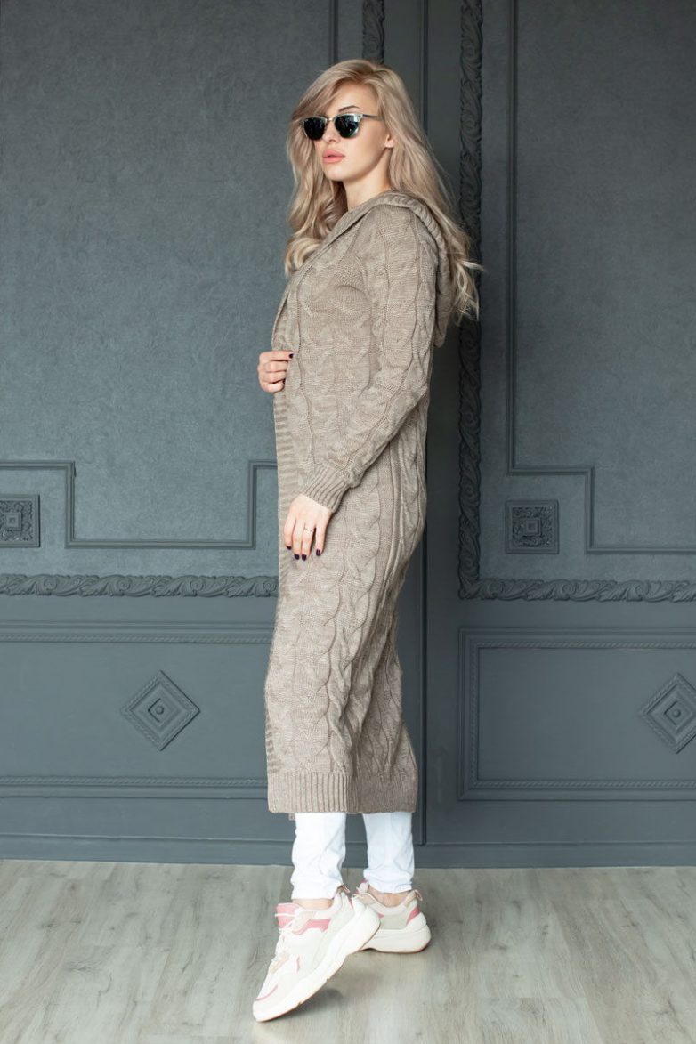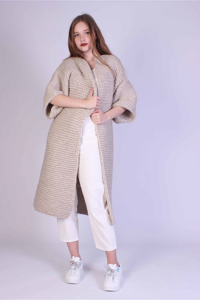 Стартуем именно с этой модели, чтобы подчеркнуть, насколько преобразились современные вариации кардиганов. Выпоенный из более плотного материала, например, твида, он однако не имеет подкладки. Это делает его сравнительно легким, но при этом теплым. Оригинально и модно будет смотреться модель, дополненная меховой отделкой – идеальное решение для осеннего и весеннего периода. Длину модный кардиган-пальто 2020 имеет удлиненную.