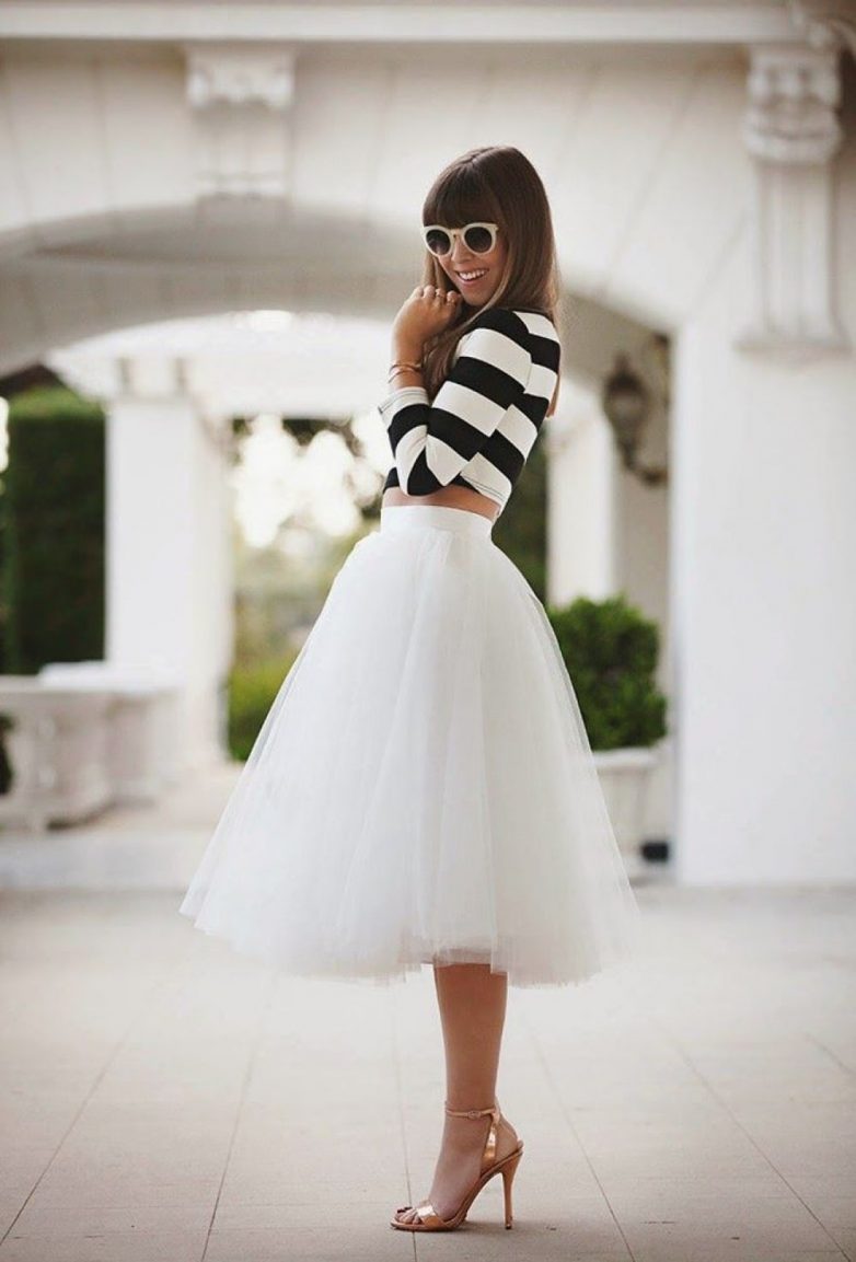 Юбки из тюля и фатина — идеальный выбор для осени. Наряд с пышной балетной юбкой выглядит очень легко, романтично и женственно. В моде балетные юбки разной длины и объема. Этот предмет гардероба отлично сочетается с обычными вещами: свитерами, водолазками, топами, пальто и даже с кожаными куртками.
