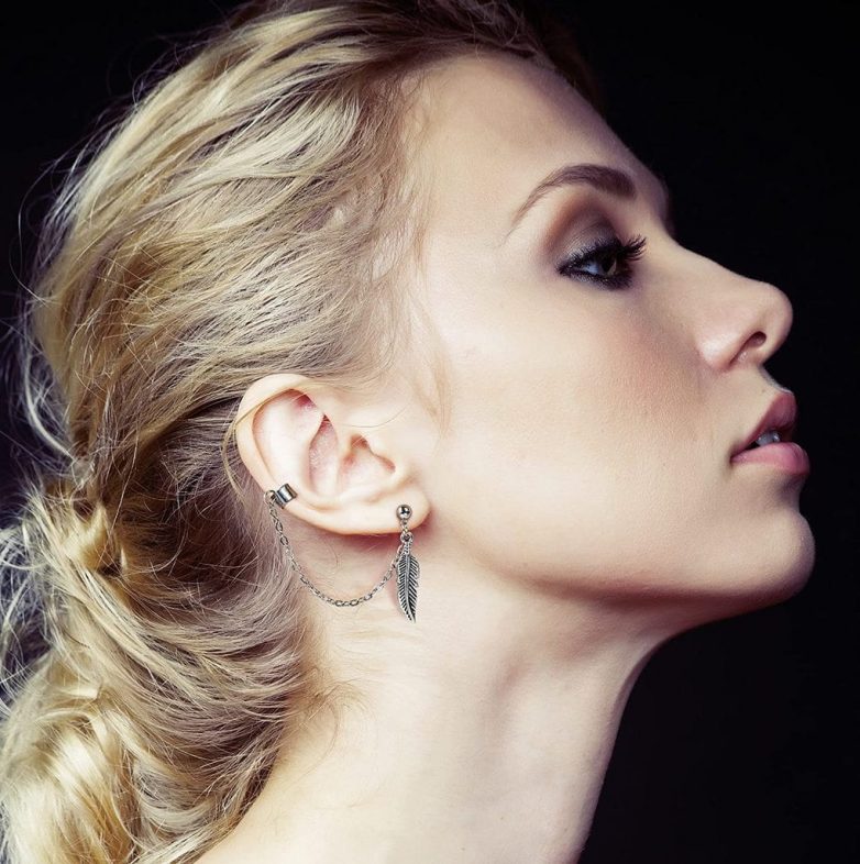 Их отличительная особенность состоит в том, что при помощи специальных зажимов аксессуар плотно прилегает к уху по краю и украшает ушную раковину. Смотрится это очень смело и экстравагантно.