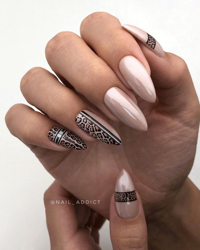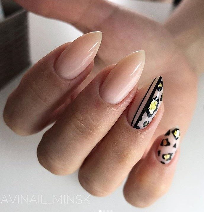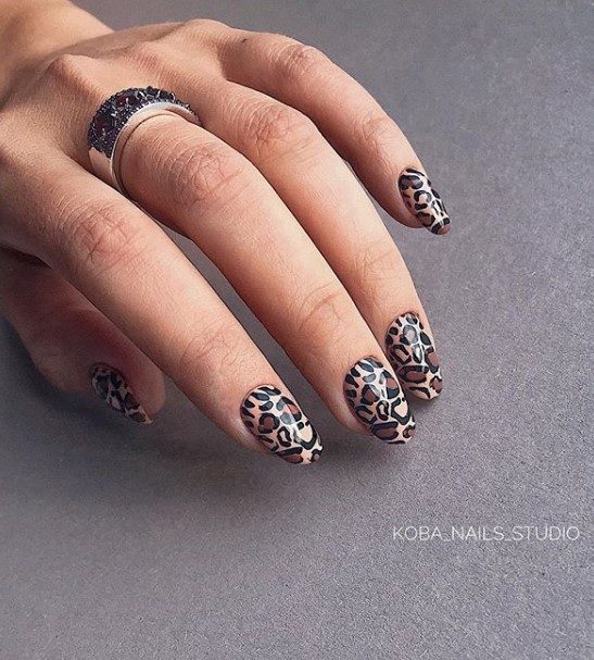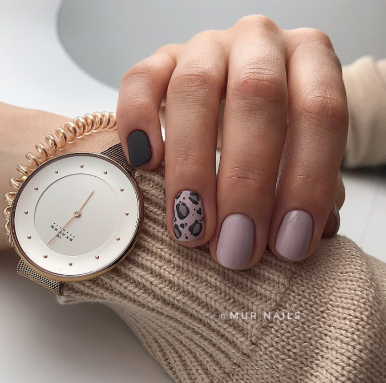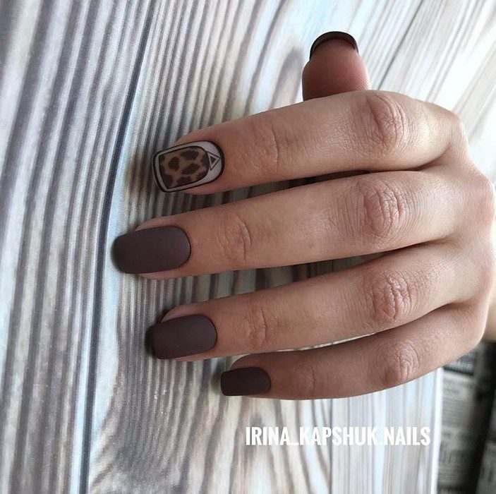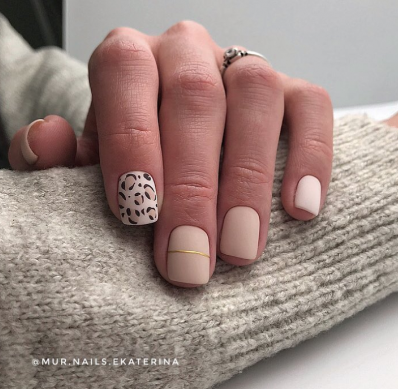 Леопардовый принт можно нанести на определенные ногти, оставив остальные однотонными.
