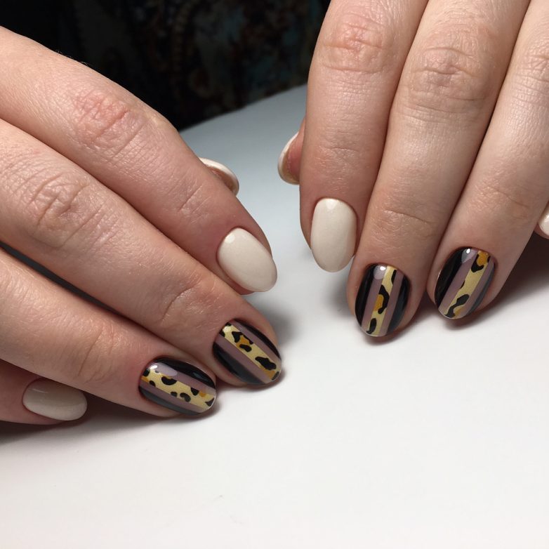 Если у вас есть леопардовое платье, то лучше сделать маникюр в соответствующих тонах. Таким образом вы создадите единый образ.