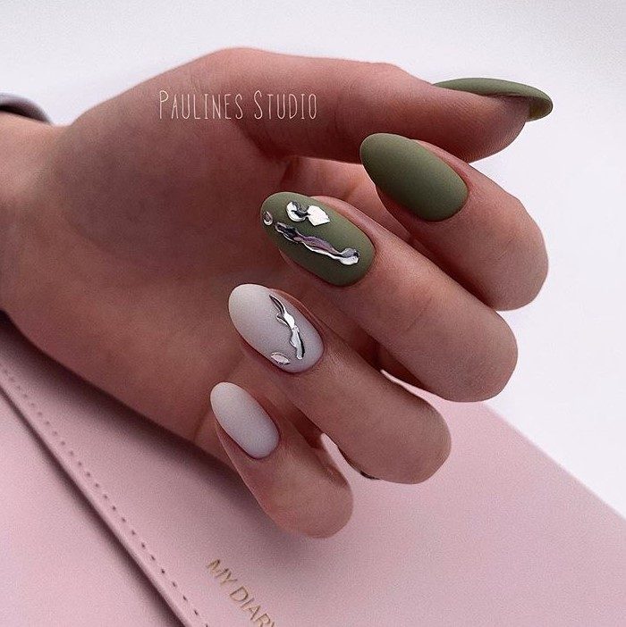 Любительницы выразить свою индивидуальность и непосредственность не останутся в стороне от модных тенденций ногтевого дизайна. Наиболее востребован будет маникюр с эффектом жидкого металла. Его называют мастера нейл-арта «слезой единорога». Узоры на мокром геле, мазки кистью, кляксы, надписи, трафаретная техника также найдут своих поклонниц.