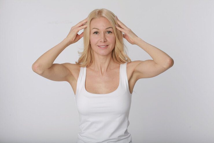 «Отрывание волос». Берем крупные пряди волос (ближе к корням) и немного дергаем их вверх, а потом сдвигаем в сторону. Выполняйте 30−60 секунд.